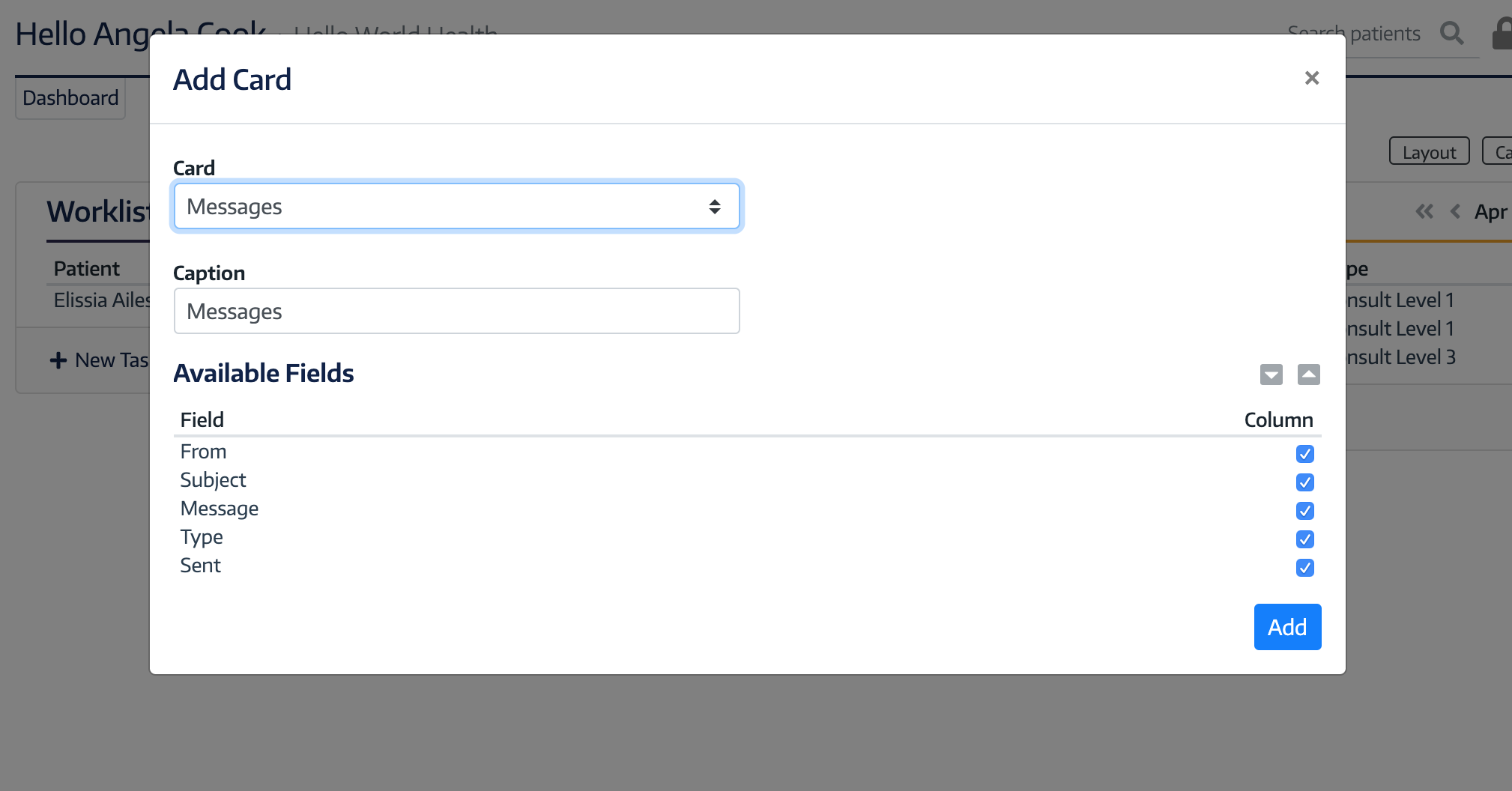 To add a card, you’ll need to click the card button in the upper right corner of your dashboard. From there, you’ll select which card you want from the card drop-down menu. Next, you can title the card what you want and choose which fields will be displayed by clicking the corresponding check box. Lastly, you can even adjust the order of the fields by selecting on and clicking the arrows shown to the right.